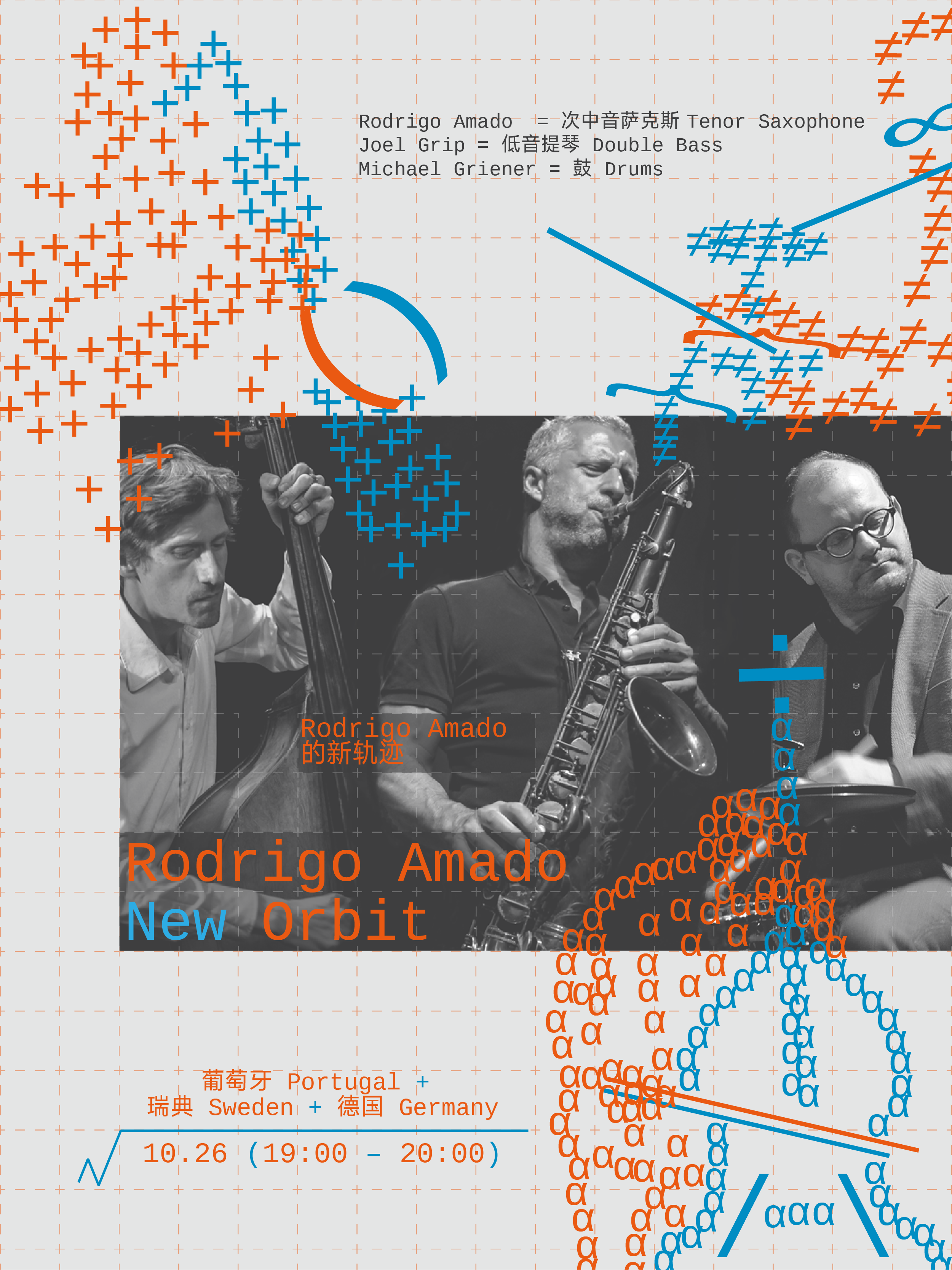 在这个名为 New Orbit 的新三重奏中,他汇聚了柏林充满活力的爵士乐坛中两位极其重要的即兴音乐家:Joel Grip 和 Michael Griener。在“完全即兴”这一苛刻的准则之下,三人不同的语言和背景在发自本能的演奏中纯粹融合。一息之间,岩浆般炽烈流动的即兴能量与充斥着丰富音色和肌理的声场同时迸发,永不设限。